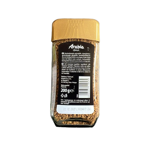 Arabia Gold – ароматна розчинна кава з насиченим смаком і м’яким збалансованим післясмаком. Добірні кавові зерна дарують виразний аромат та приємну фортецю, яка чудово бадьорить та наповнює енергією на весь день. Завдяки технології дбайливого сушіння зберігається природний смак та аромат кави. Гранули швидко розчиняються у гарячій воді, дозволяючи приготувати улюблений напій лише за кілька секунд.