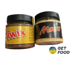 Шоколадна паста Twix поєднує в собі натуральний молочний шоколад, карамель та хрусткі шматочки печива. Крем має насичений смак та густу концистенцію.