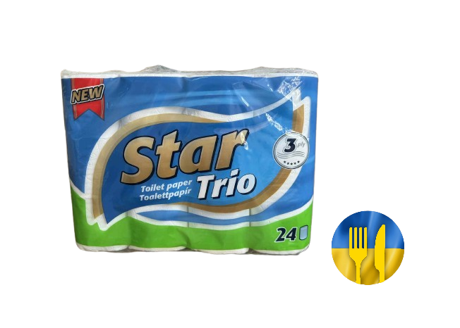 Vanessa Star Trio – это трехслойная туалетная бумага. Очень мягкая, имеет приятную текстуру. Эта бумага отлично впитывает влагу и не содержит вредных веществ. Благодаря тому, что бумага имеет три слоя, она прочнее в использовании, поскольку не прилипает к рукам и не размокает.